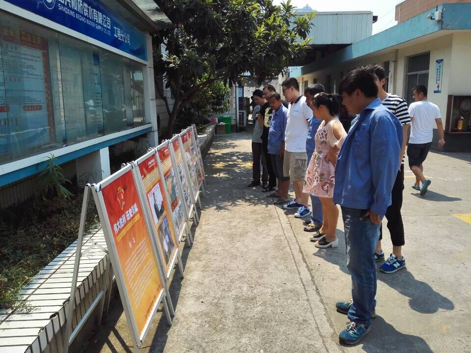 在“9月3日中國人民抗日戰(zhàn)爭勝利紀(jì)念日”到來之際,供水公司通過多種形式開展宣傳和紀(jì)念活動。一是制作《偉大勝利、歷史貢獻(xiàn)》抗日戰(zhàn)爭勝利宣傳展板,分別以全民族抗戰(zhàn)、中流砥柱、東方主戰(zhàn)場、侵華日軍暴行、偉大勝利、珍愛和平等主題反映中華民族抗日戰(zhàn)爭,并在公司下屬7個(gè)支部之間進(jìn)行巡展,讓廣大干部職工銘記中國抗日戰(zhàn)爭的歷史;二是以部門為單位,組織學(xué)習(xí)《中國抗日戰(zhàn)爭70問》和《抗戰(zhàn)記憶》,讓廣大干部職工深刻理解抗日戰(zhàn)爭的偉大意義;三是利用中午午休時(shí)間,以支部為單位,組織廣大黨員干部觀看抗日戰(zhàn)爭影片《南京,南京》。通過主題宣傳,弘揚(yáng)偉大抗戰(zhàn)精神,讓廣大職工銘記歷史、珍愛和平。