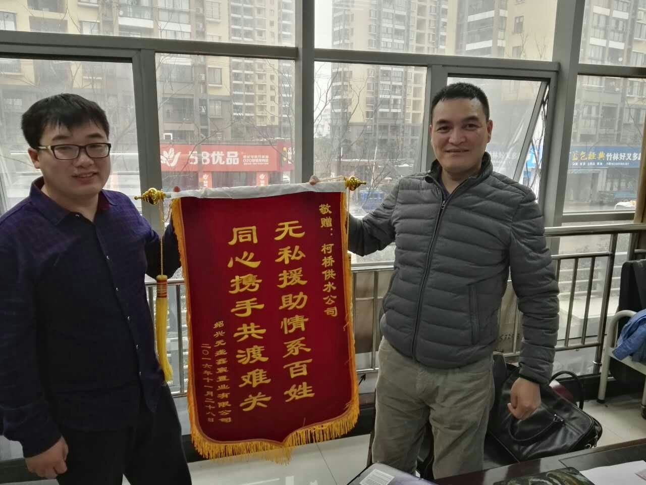 12月5日,二次供水分公司收到紹興元壟鑫宸置業(yè)有限公司大都會(huì)項(xiàng)目負(fù)責(zé)人專程送來的錦旗,對分公司工作人員為大都會(huì)樣板房場外給水管道建設(shè)提供的真情服務(wù)表示贊賞和感謝。